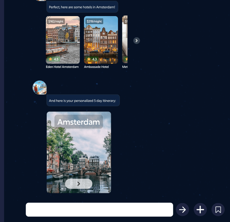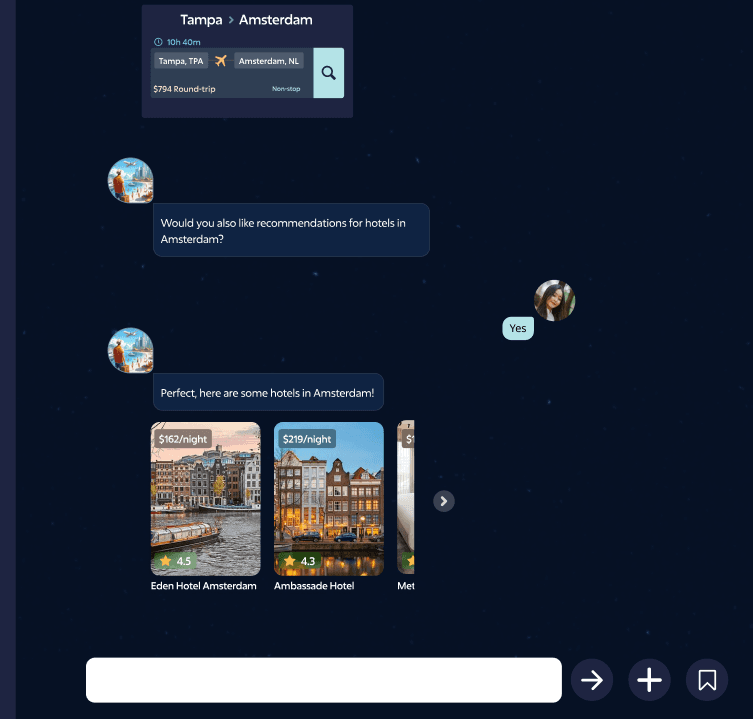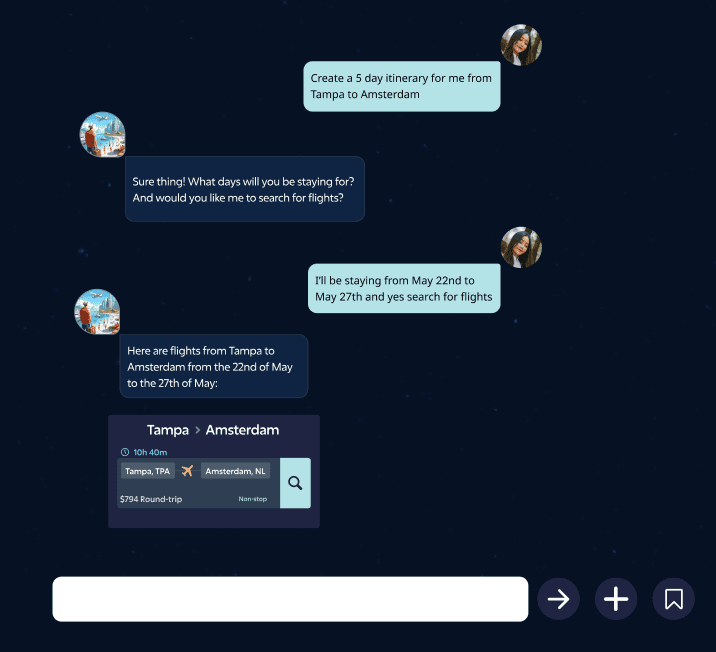 Current travel solutions don’t converse with you, unlike a friend or travel agent would.