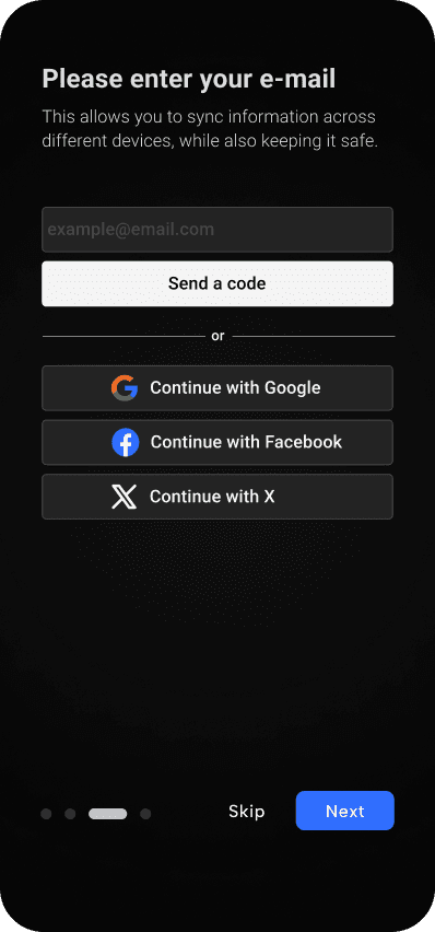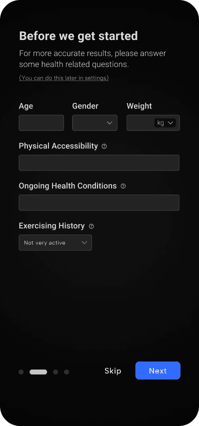 The onboarding process briefly prompts users to provide information about their health for more accurate results later on.