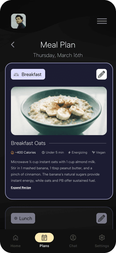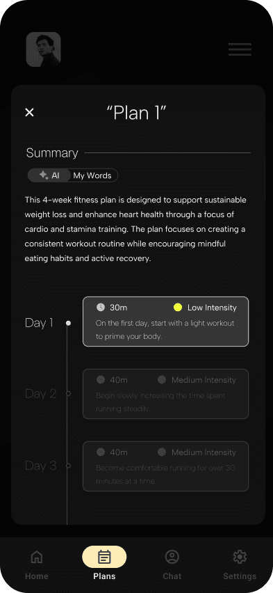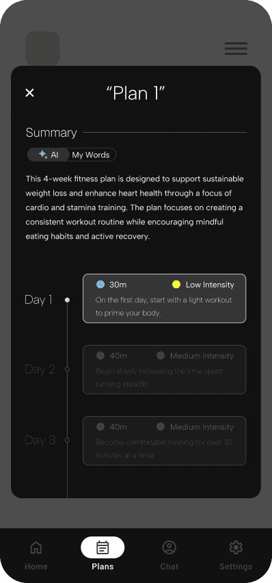 Designing for autonomy, means allowing users to have control over the "ownership" of a plan, while not being limited to a single path. Post-creation editing boosts autonomy, which is usually done when new user needs are needed to be met. For example, a recent injury, a new preference, or a changed deadline can be causes for plan revision, which can be done swiftly.