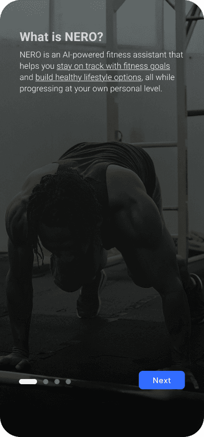 NERO pushes for a self-initiative and consistent approach for every user. It assists users with necessary information needed to become dedicated and self-dependable towards following a goal. This section is a rather lengthy, but goes deeper into how I design for accountability and motivation.